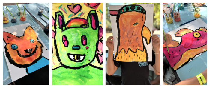 Tout d’abord, mes ateliers « PORTRAITS D’ANIMAUX » ont eu lieu à l’ombre des grands arbre de Mouans-Sartoux !🌳 De drôles de personnages, mi enfants-mi-animaux sont apparus à l’abri des remparts du château !🦊🦉🐥